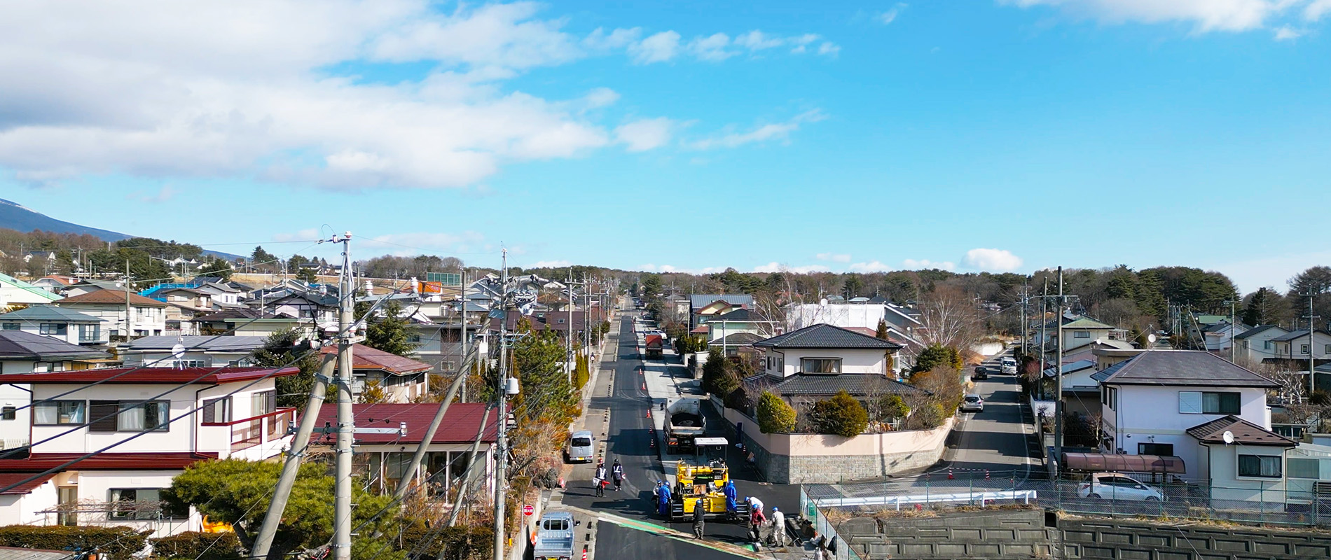 地域の皆さまが安全に利用できる舗装工事から、道路や河川などの基盤整備まで、長年培った技術と経験で事業を遂行しています。